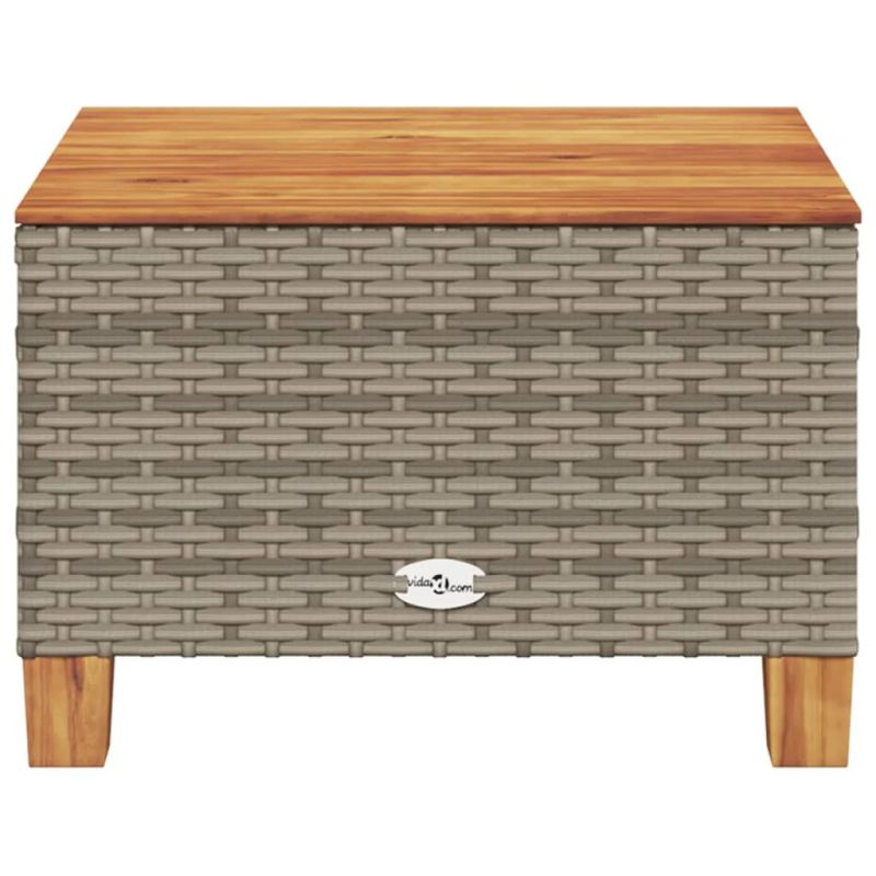 Градинска маса, сива, 55x55x36 см, полиратан и акациево дърво
