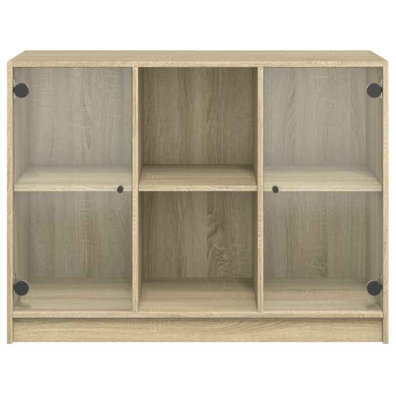 Този сайдборд предоставя идеално решение за организиране на вашите книги и ще добави модерен чар към вашия интериор. Издържлив и здрав материал: Инженерната дървесина е с изключително качество с гладка повърхност и също така се отличава със здравина, стабилност и устойчивост на влага.Достатъчно място за съхранение: Страничният шкаф предлага достатъчно място за съхранение за поддържане на вашата колекция от книги, списания и документи в добро състояние.Стабилен и здрав плот: Горната част на шкафа за съхранение е идеална за излагане на вашите декоративни предмети, рамки за картини и саксийни растения.Практичен дизайн: Пазете най-важните вещи от прах, като ги скриете зад вратичките. В допълнение, черните дръжки улесняват отварянето на страничния шкаф. Внимание:За да предотвратите преобръщане, този продукт трябва да се използва с предоставеното устройство за закрепване на стена.