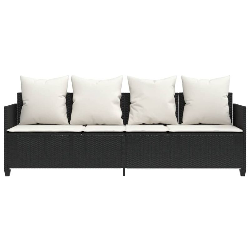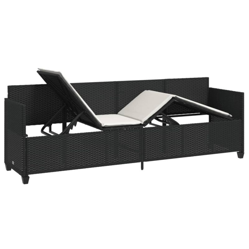 Шезлонг с възглавници, черен, полиратан