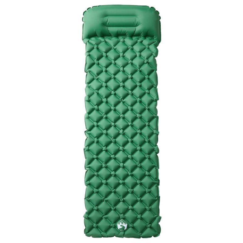 Надуваем дюшек за къмпинг с възглавница за 1 човек зелен