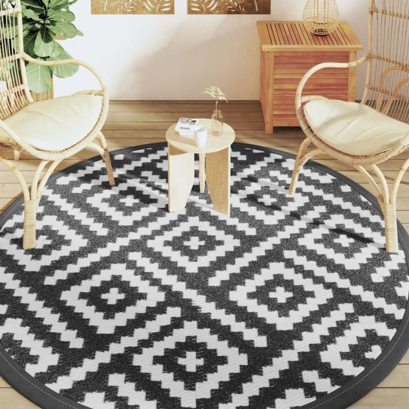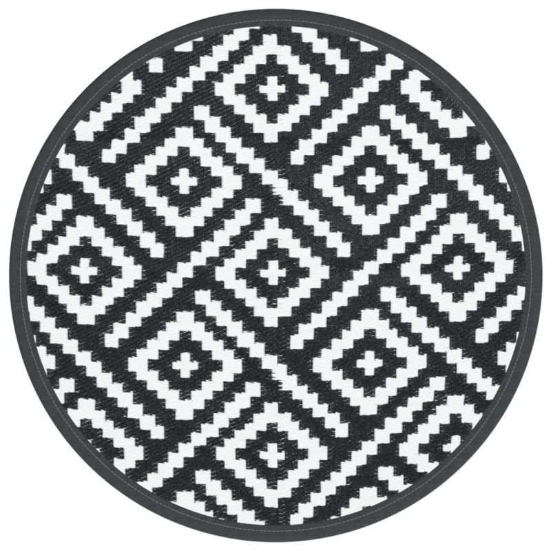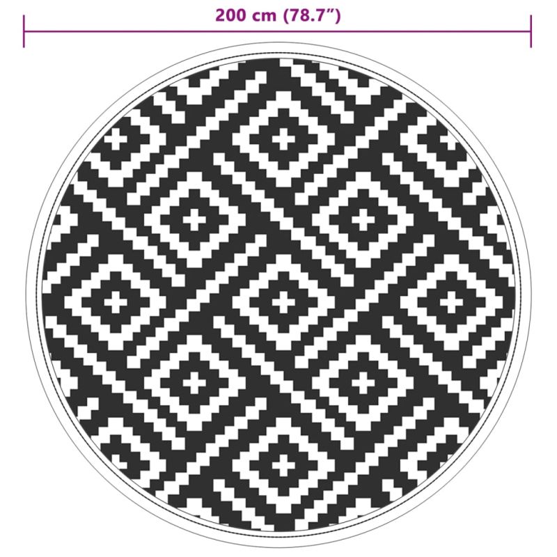 Килим за открито, ARAKIL бяло и черно, Ø200 см, PP