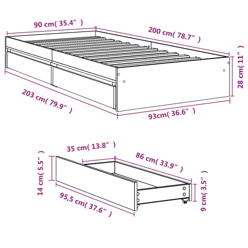 Рамка за легло с чекмедже дъб сонома 90x200 см инженерно дърво