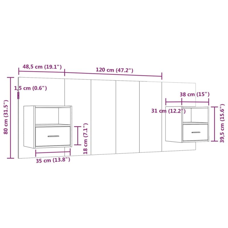 Здравата табла за легло с шкафчета и класически дизайн придава завършен вид на рамката на леглото и е подходяща за всяка спалня. Издържлив материал: Инженерната дървесина е с изключително качество с гладка повърхност и също така се отличава със здравина, стабилност и устойчивост на влага.Дизайн за стенен монтаж: Окачените нощни шкафчета и таблата могат да бъдат монтирани на стена. По този начин можете да увеличите максимално площта на пода и да поддържате пространството подредено.Място за съхранение: Нощното шкафче разполага с просторно място за съхранение, което ви позволява да държите нещата си организирани. Внимание:Винт(ове) и щепсел(и) за вътрешността на стената не са включени. Търсете и използвайте винт(ове) и дюбел(и), подходящи за вашите стени. Ако не сте сигурни, потърсете професионална помощ. Прочетете и следвайте внимателно всяка стъпка от инструкциите.