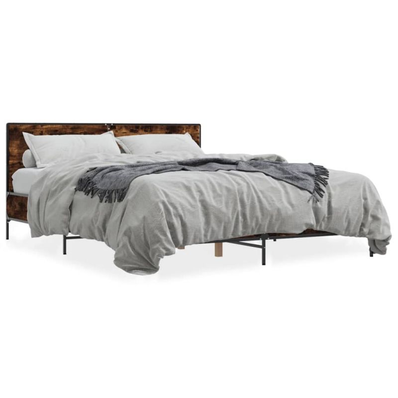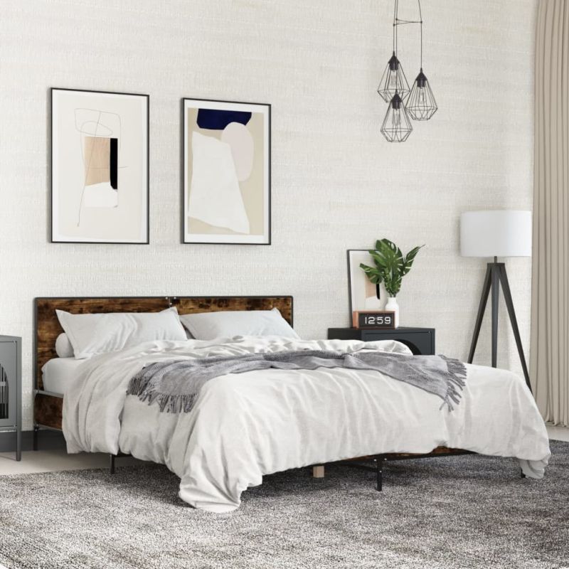 Рамка за легло, опушен дъб, 160x200 см, инженерно дърво и метал