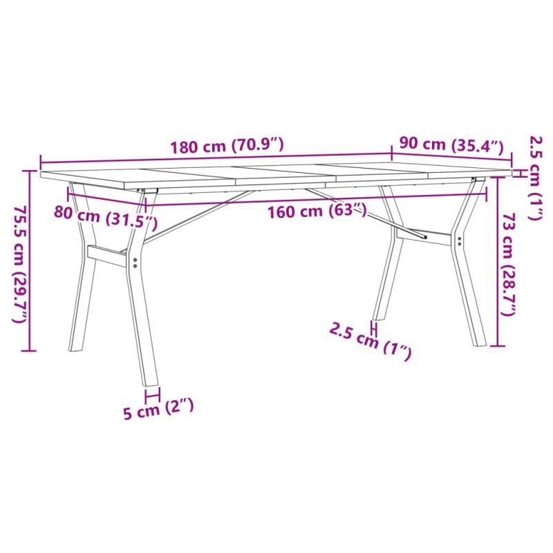Трапезна маса Y-образна рамка 180x90x75,5 см бор масив и стомана