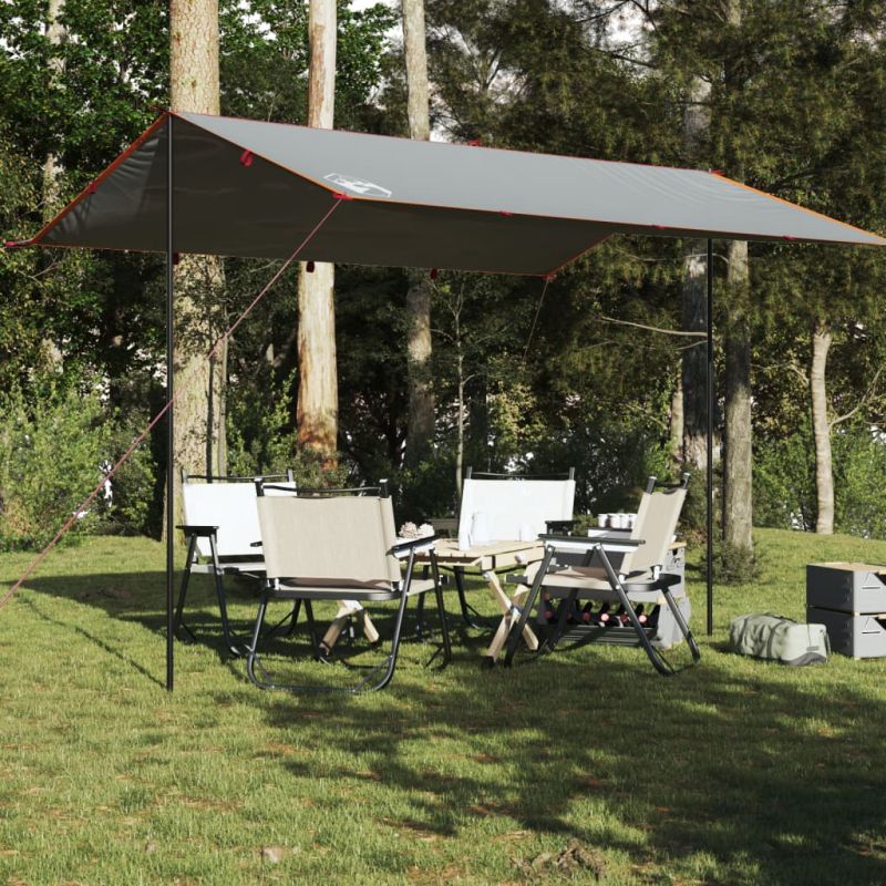 Брезент за къмпинг, сиво и оранжево, 400x294 см, водоустойчив