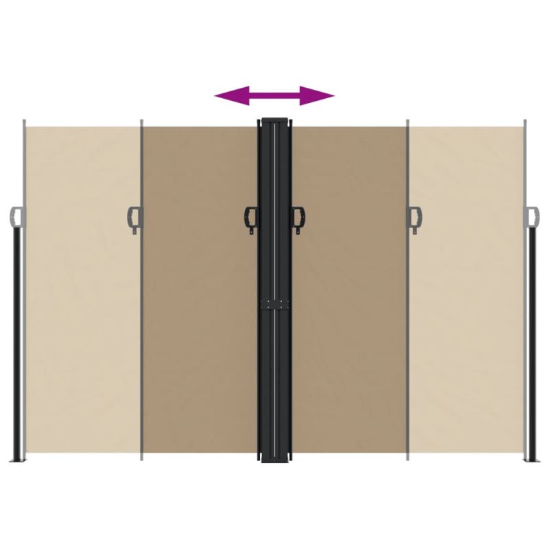 Създайте незабавен и личен оазис на вашия балкон, тераса или вътрешен двор с помощта на тази прибираща се странична тента! Устойчив на вода и UV лъчи: Този параван за уединение в градината е изработен от 100% полиестер с полиуретаново (PU) покритие, осигуряващо добра дишаемост и отлична защита срещу вятър, слънце, вода и UV светлина.Удобен дизайн: Благодарение на прибиращия се дизайн, градинският параван автоматично се навива назад, когато махнете дръжката от стълба.Стълбовете могат лесно да бъдат фиксирани към земята за допълнителна стабилност и безопасност с помощта на включените аксесоари за монтаж.Широки приложения: Тази универсална странична тента може да се използва в различни настройки, както на открито като заден двор, тераса, градина, веранда, балкон, така и на закрито като офис, клиника, студио, съблекалня, за създаване на допълнително пространство на стената според нуждите.