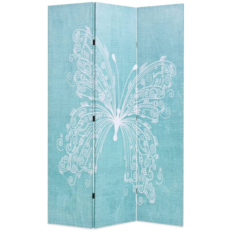 Сгъваем параван за стая, 120x170 см, пеперуда, син