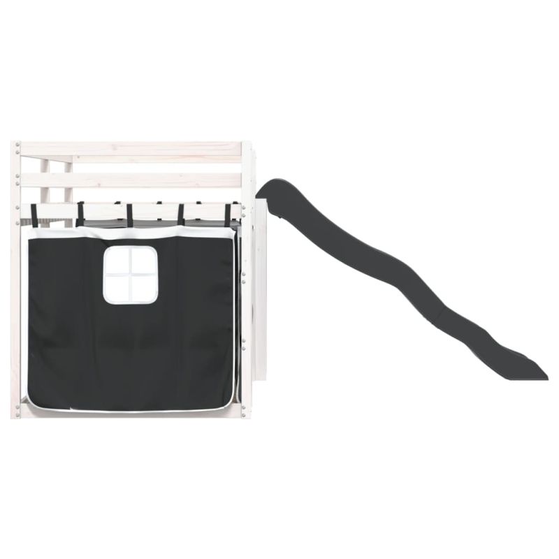 Двуетажно легло с пързалка и завеси, бяло и черно, 90x200 см