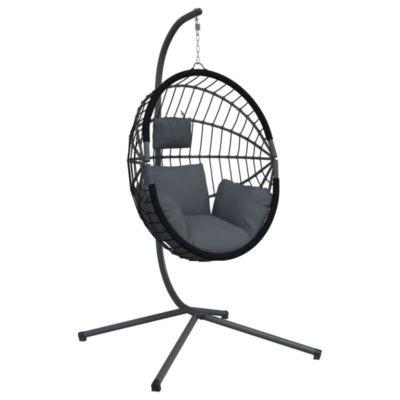 Висящ стол яйце със стойка, антрацит, ратан и стомана