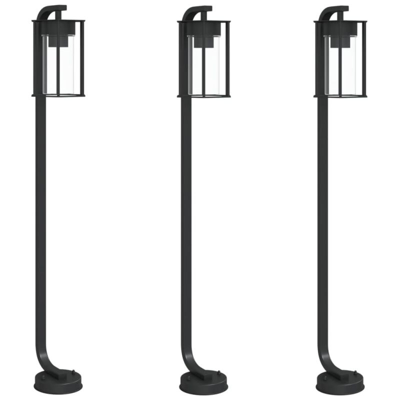 Външни подови лампи, 3 бр, черни, 60 см, неръждаема стомана