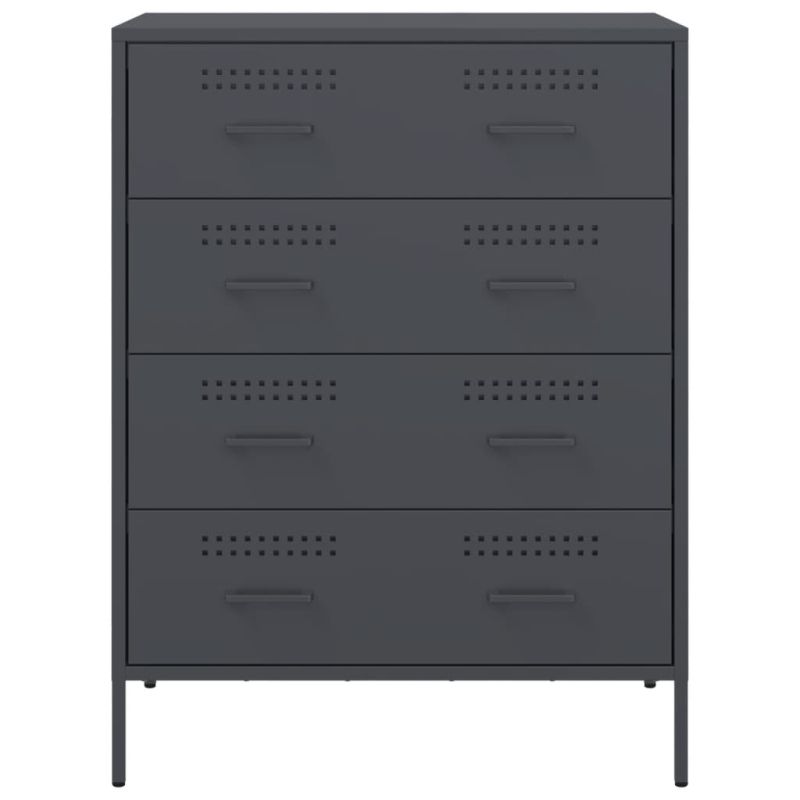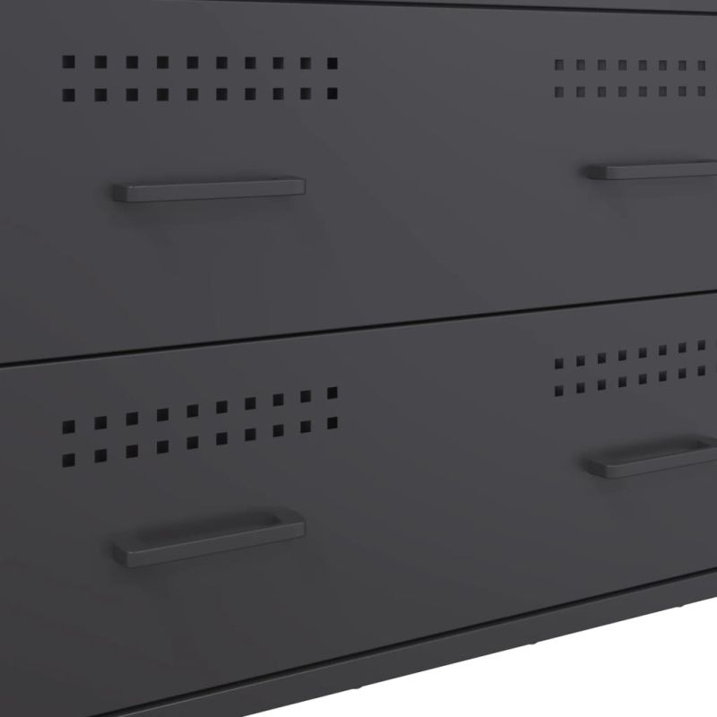 Този здрав бюфет с индустриален стил е непреходно допълнение към вашата всекидневна или спалня. Здрава и стабилна рамка: Стоманата е здрава, стабилна и издръжлива, което я прави идеален избор за широк спектър от приложения – от производството на мебели до строителството.Достатъчно място за съхранение: Този бюфет има 4 чекмеджета, което осигурява достатъчно място за съхранение, за да съхранявате вашите различни ежедневни неща добре организирани и леснодостъпни. Лесен за почистване: Шкафът се почиства лесно с влажна кърпа и изисква по-малко поддръжка.Внимание:За да предотвратите преобръщане, този продукт трябва да се използва с предоставеното устройство за закрепване на стена. Не използвайте този артикул, ако някой от компонентите е счупен, скъсан или липсва.