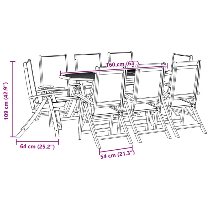 Градински трапезен комплект, 9 части, акация масив и textilene
