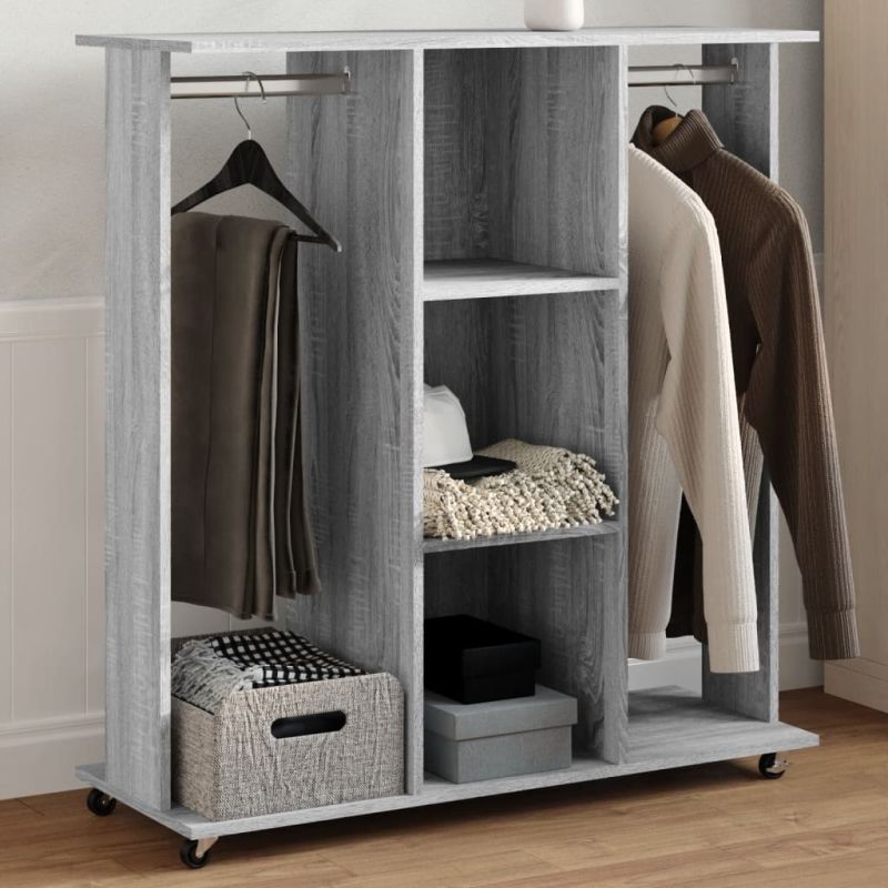 Гардероб, сив сонома, с колелца, 102x38x110 см, инженерно дърво