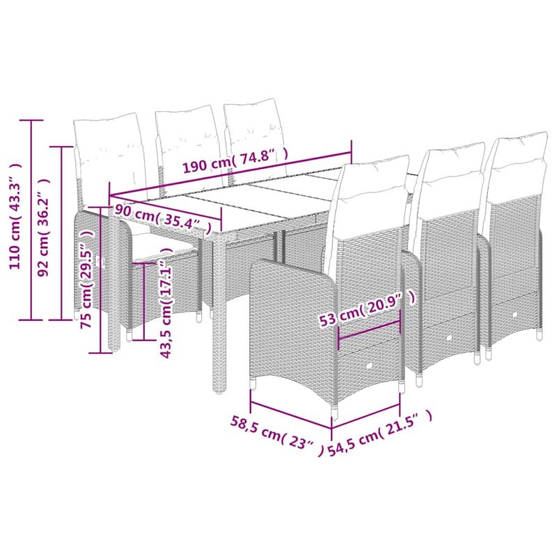 Градински бистро комплект с възглавници 7 части сив полиратан