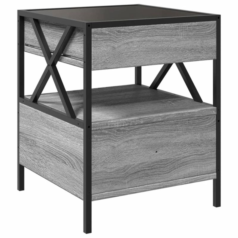 Нощна масичка с Infinity LED, сив сонома, 40x40x51 см