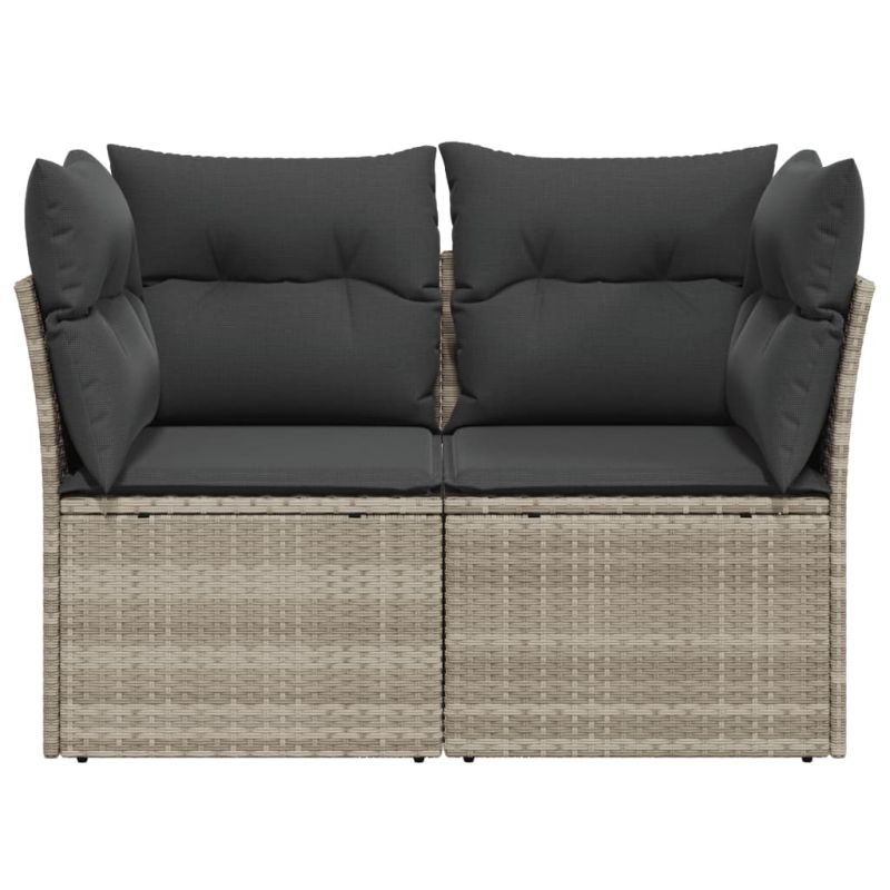 Отпуснете се и се насладете на живота на открито в този удобен 2-местен градински диван! Издръжлив материал: PE ратан, известен също като полиратан, е здрав синтетичен материал с малко необходима поддръжка, който прилича на естествен ратан. Той е лек, лесен за почистване и често се използва за външни мебели поради своята издръжливост и устойчивост на атмосферни влияния.Удобна седалка: Тази мебел за открито, снабдена с плътно подплатени възглавници, предлага удобство при сядане.Калъф, който може да се сваля и може да се пере: Тези възглавници за седалки имат подвижни калъфи за лесно пране и поддръжка.Модулен дизайн: Този комплект външни мебели има модулен дизайн, което го прави напълно гъвкав и лесен за преместване, така че можете да създадете персонализирана подредба на външни мебели. Добре е да се знае:За да сте сигурни, че вашите външни мебели ще останат красиви, ви препоръчваме да ги защитите с водоустойчиво покривало.