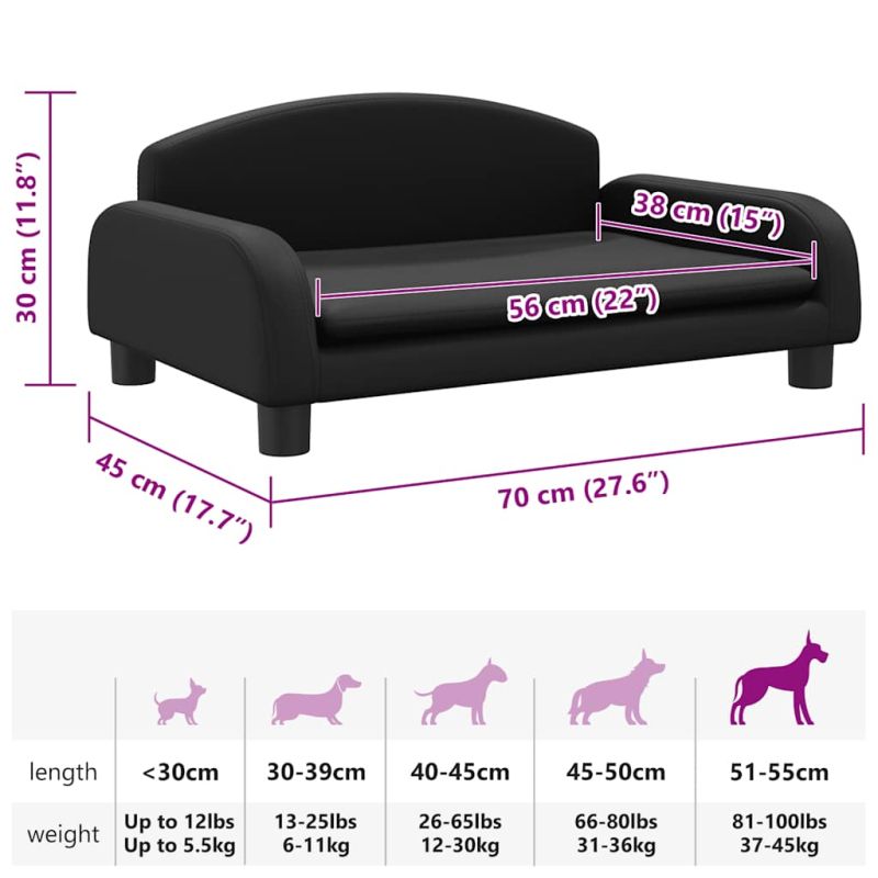 Снабдете вашето пухкаво приятелче с топло и удобно място за почивка с това луксозно легло за кучета! Удобен и мек материал: Диванът за домашни любимци е подплатен с плътна и мека пяна и покрит с изкуствена кожа, осигурявайки достатъчно опора и превъзходен комфорт за вашия прекрасен домашен любимец да почива на него.Здрава и издръжлива рамка: Рамката от масивна борова дървесина осигурява здравина и издръжливост на кучешкия диван. Четирите крака също добавят допълнителна стабилност.Лесно почистване: Калъфът от изкуствена кожа на този диван за кучета е водоустойчив, устойчив на мръсотия, лесен за изтриване и почистване.Стилен дизайн: Този диван за кучета се съчетава идеално с всяка тема на декора и е чудесно допълнение към вашата всекидневна или спалня. Забележка:Моля, измерете дължината на тялото на вашия домашен любимец преди покупка. НЕ поставяйте този продукт в близост до прозорец, тъй като детето може да го използва като стъпало и да падне през прозореца. Отчитайте риска от открит огън и други източници на силна топлина в близост до продукта. НЕ поставяйте този продукт в близост до прозорец, където шнуровете от щорите или завесите могат да задушат децата.