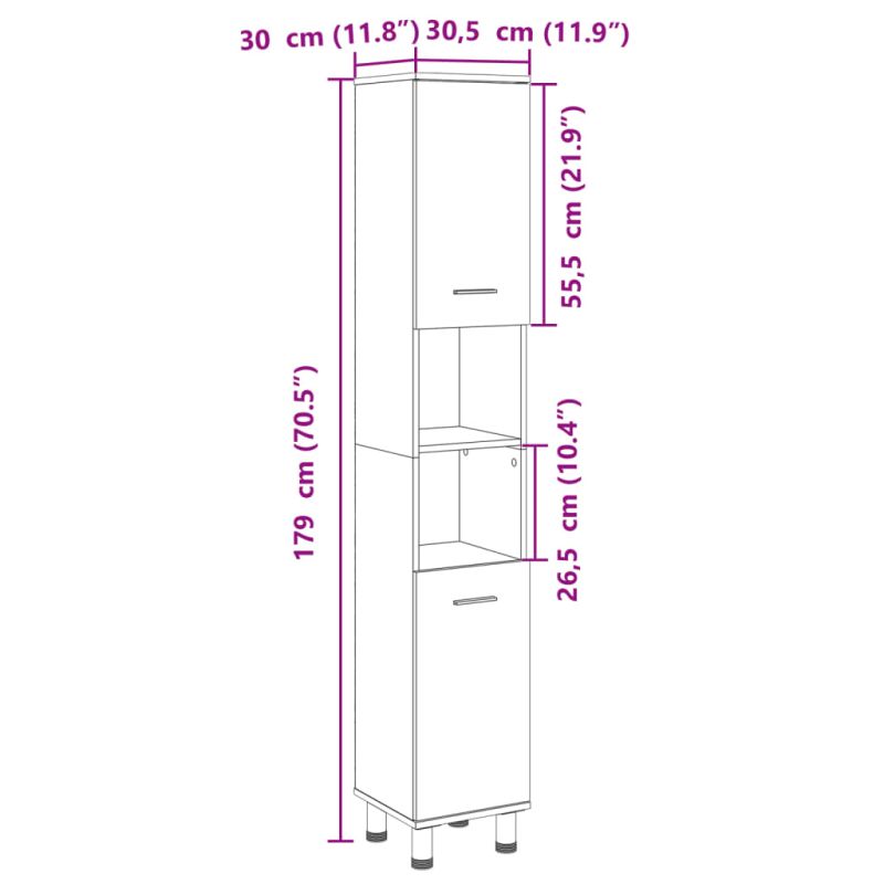 Шкаф за баня, сонома дъб, 30,5x30x179 см, инженерно дърво