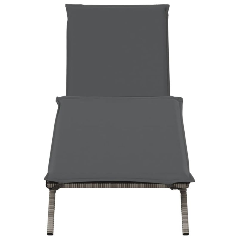 Шезлонг с възглавница, сив, полиратан
