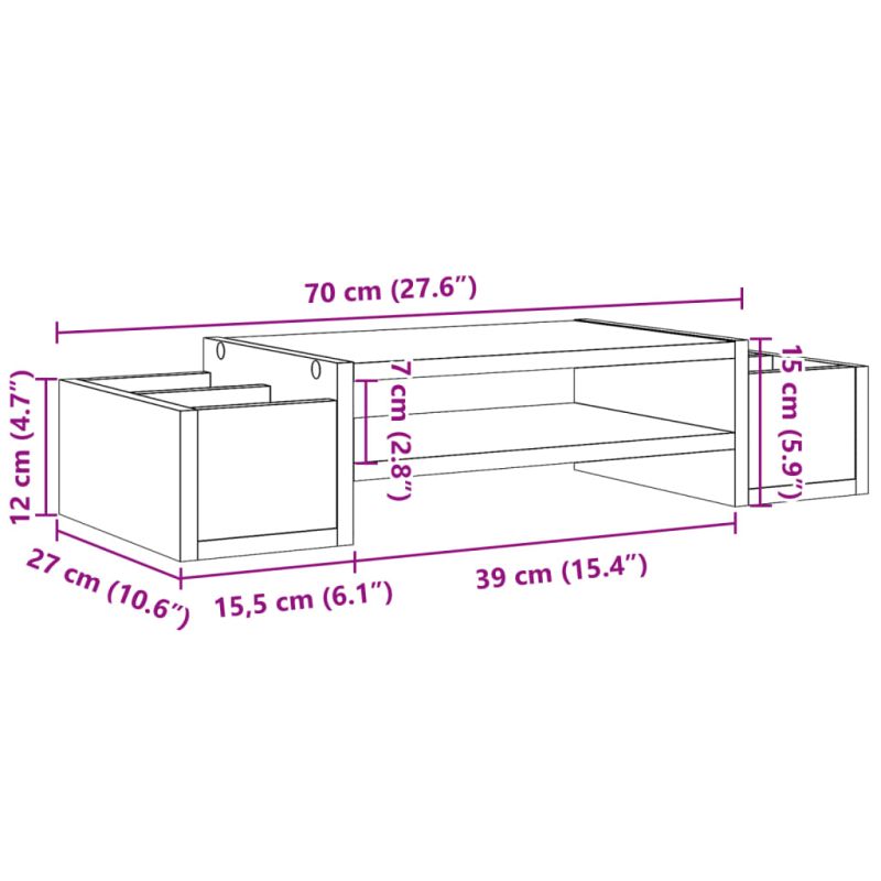Поставка за монитор за съхранение, кафяв дъб, 70x27x15 см