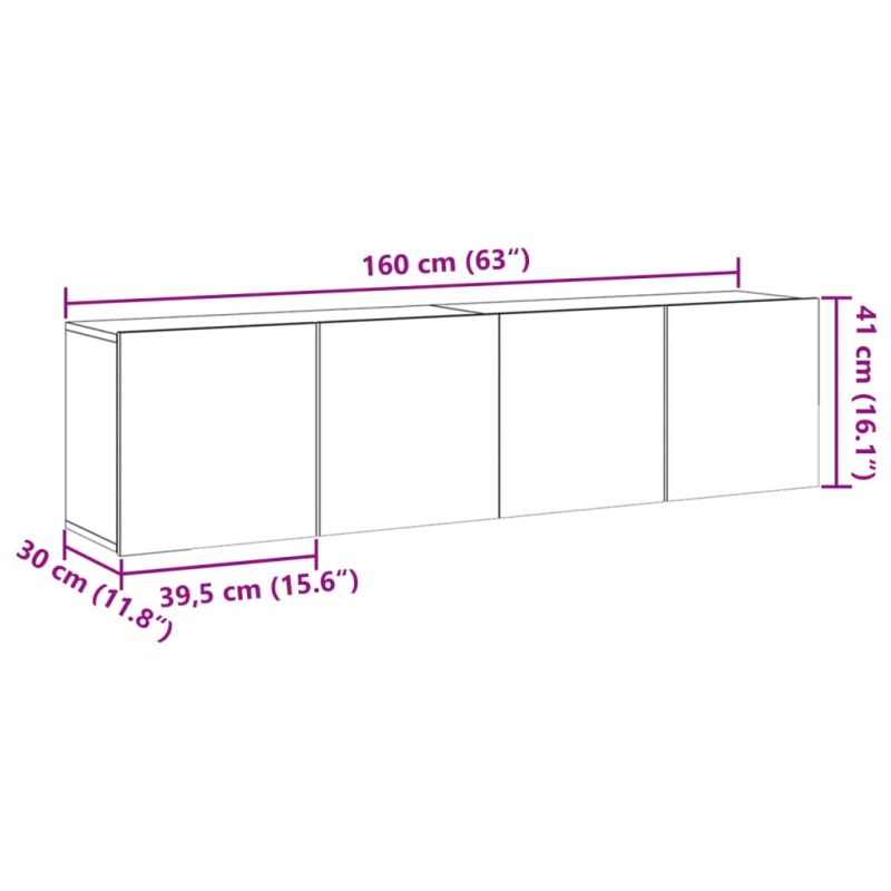 С модерен, но практичен дизайн, тези ТВ шкафове ще се превърнат във фокусна точка на вашата стая. Стабилен и издръжлив материал: Инженерната дървесина е издръжлив и стабилен материал с гладка повърхност, която е устойчива на влага, изкривяване и разцепване, което я прави надежден избор за различни проекти. Достатъчно място за съхранение: Тези ТВ модули предлагат достатъчно място за съхранение, за да държите вашите DVD плейъри, приемници, дискове и други дребни предмети добре организирани и достъпни. Дизайн със стенен монтаж: Тези шкафове за мултимедийни устройства могат да се монтират на стена за допълнително място за съхранение. По този начин можете да увеличите максимално пространството на пода и да поддържате чистота. Добре е да се знае:Винтовете и дюбелите за стената не са включени. Съветваме ви да намерите и използвате винтове и дюбели, подходящи специално за вашите стени. Ако не сте сигурни, можете да се консултирате с професионалист. Моля, прочетете и следвайте всяка стъпка от инструкциите.