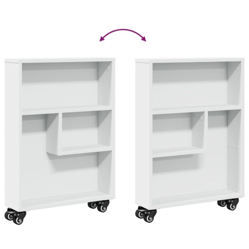 Тясна количка за съхранение, бяла, 48x13x68 см, инженерно дърво
