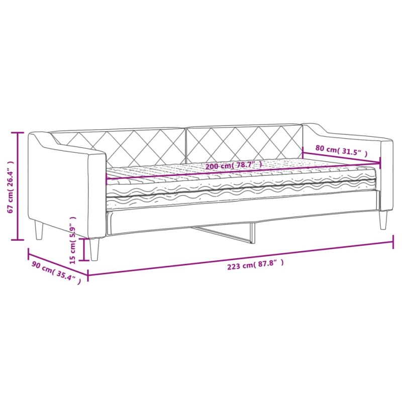 Канапе с матрак, черно, 80x200 см, плат