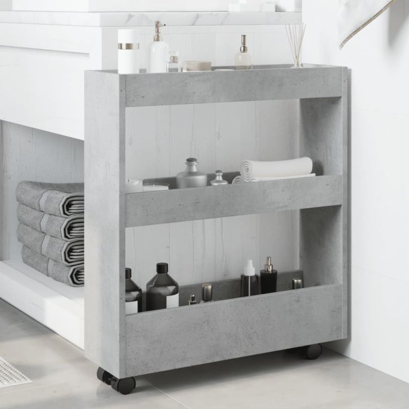 Тясна количка за съхранение 3 нива бетонно сивa инженерно дърво