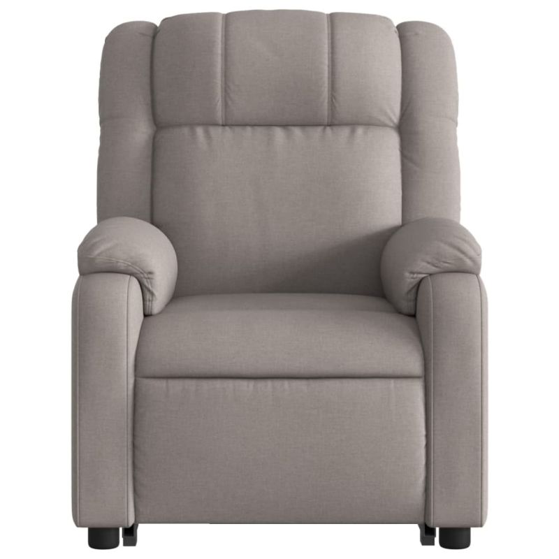 Облегнете се и се отпуснете в този изключително комфортен изправящ наклоняем стол! Функция за повдигане: Този стол реклайнер е оборудван с електрически двигател с функция за повдигане. Благодарение на функцията, която избутва целия стол нагоре, можете лесно да стоите, без да натоварвате гърба и коленете си с просто натискане на бутона.Функция за ръчно накланяне: Този накланящ се стол има дръжка от дясната страна. Можете ръчно да настроите поставката за крака и облегалката до произволна позиция според вашето удобство с просто издърпване на дръжката. Тази функция позволява максимален наклон от 135 градуса. Освен това облегалката може бързо да се върне на първоначалното си място с лесно издърпване на дръжката.Удобно седене: Дебело подплатената седалка, облегалката и широките подлакътници, покрити с текстил, осигуряват уютно и топло усещане, което ви кара да се чувствате като в прегръдка, докато седите. Тъканта се отличава със семпъл и изчистен вид и е дишаща и издръжлива.Удобен страничен джоб: Този фотьойл има страничен джоб, за да държите основните си вещи леснодостъпни.Здрава и стабилна рамка: Рамката, изработена от дърво и метал, осигурява здрава структура и стабилност. Този накланящ се фотьойл е удобен и издръжлив. Максимално 110 кг на седалка.Този уред може да се използва от деца на възраст от 8 години и повече и от лица с намалени физически, сетивни или умствени способности или с липса на опит и познания, ако са получили надзор или инструкции за безопасно използване на уреда и разбират свързаните с него опасности. Децата не трябва да си играят с уреда. Децата не трябва да почистват и да извършват потребителска поддръжка без надзор.