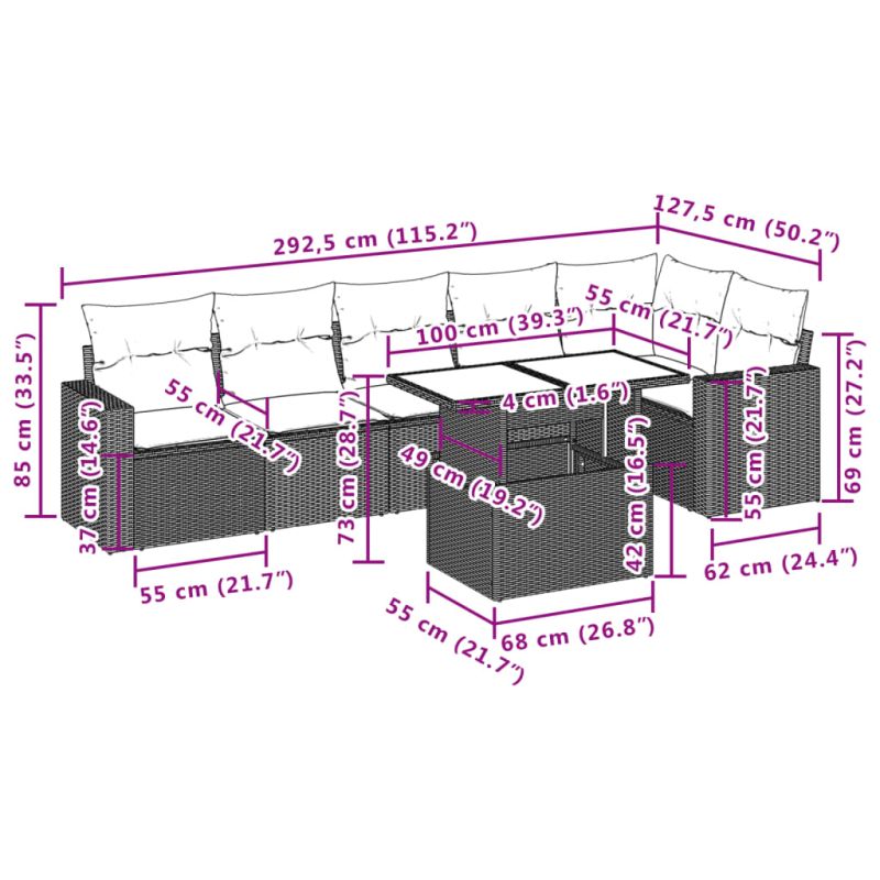 Този градински диван е идеалното допълнение към вашия заден двор, тераса или вътрешен двор, осигурявайки удобно и привлекателно пространство за разговори със семейството и приятелите или просто за почивка и забавление на открито. Издръжлив материал: PE ратан, известен също като полиратан, е здрав синтетичен материал с малко необходима поддръжка, който прилича на естествен ратан. Той е лек, лесен за почистване и често се използва за външни мебели поради своята издръжливост и устойчивост на атмосферни влияния.Регулируем плот: Плотът може да се повдигне, за да направи масата по-висока, което трансформира външната маса от маса за кафе в маса за хранене. Идеална е за гости или за хранене навън.Удобна седалка: Тази мебел за открито, снабдена с плътно подплатени възглавници, предлага удобство при сядане.Калъф, който може да се сваля и може да се пере: Тези възглавници за седалки имат подвижни калъфи за лесно пране и поддръжка.Модулен дизайн: Този комплект външни мебели има модулен дизайн, което го прави напълно гъвкав и лесен за преместване, така че можете да създадете персонализирана подредба на външни мебели. Добре е да се знае:За да сте сигурни, че вашите външни мебели ще останат красиви, ви препоръчваме да ги защитите с водоустойчиво покривало.
