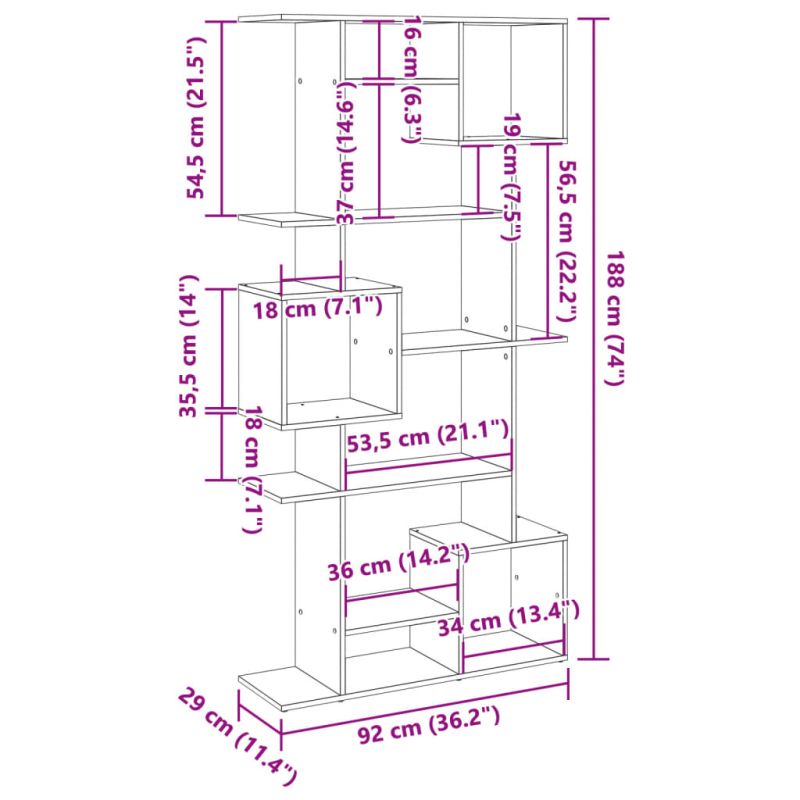 Тази класическа библиотека, отличаваща се с елегантен дизайн, е както декоративно, така и практично допълнение към вашия интериор.Издръжлив материал: Инженерната дървесина е с изключително качество с гладка повърхност и също така се отличава със здравина, стабилност и устойчивост на влага.Голямо пространство за съхранение: Рафтът за книги е проектиран с 9 просторни отделения, които предлагат достатъчно място за съхранение на списания, книги, DVD-та, мултимедийни устройства и други декоративни предмети, които са добре подредени и достъпни.Универсален рафт: Етажерката за книги може да служи и като разделител на стая, което я прави перфектен избор за вашето жилищно пространство.Лесен за поддръжка: Този рафт за съхранение се почиства лесно с влажна кърпа и изисква по-малко поддръжка.Внимание:За да предотвратите преобръщане, този продукт трябва да се използва с предоставеното устройство за закрепване на стена.