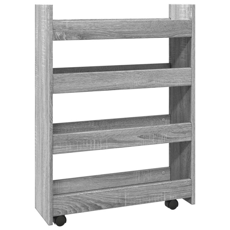 Тясна количка за съхранение 4 нива сив сонома инженерно дърво