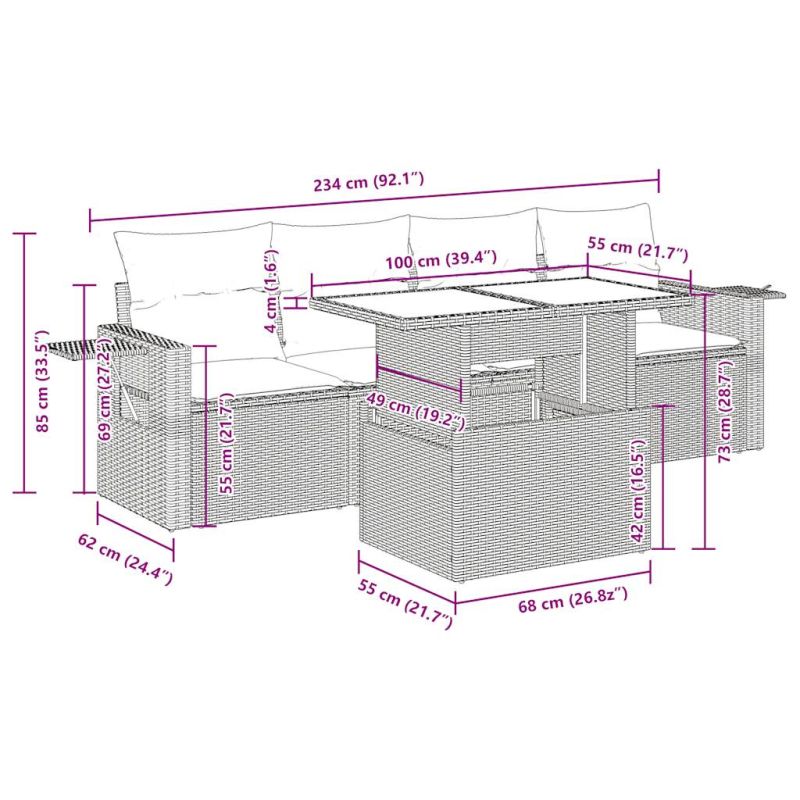 Този градински диван е идеалното допълнение към вашия заден двор, тераса или вътрешен двор, осигурявайки удобно и привлекателно пространство за разговори със семейството и приятелите или просто за почивка и забавление на открито. Издръжлив материал: PE ратан, известен също като полиратан, е здрав синтетичен материал с малко необходима поддръжка, който прилича на естествен ратан. Той е лек, лесен за почистване и често се използва за външни мебели поради своята издръжливост и устойчивост на атмосферни влияния.Функция за съхранение с водоустойчива чанта: Всяка градинска седалка разполага с място за съхранение под седалката, допълнено с водоустойчива чанта за съхранение на възглавници, играчки и други предмети. Вътрешната чанта има горен капак и може да бъде здраво закрепена към седалката със закопчалки за допълнителна стабилност.Регулируем плот: Плотът може да се повдигне, за да направи масата по-висока, което трансформира външната маса от маса за кафе в маса за хранене. Идеална е за гости или за хранене навън.Калъф, който може да се сваля и може да се пере: Тези възглавници за седалки имат подвижни калъфи за лесно пране и поддръжка.Здрава и стабилна рамка: Прахово боядисаната стоманена рамка е здрава, стабилна, издръжлива и устойчива на корозия и неблагоприятни атмосферни условия, което гарантира дълготрайна експлоатация. Добре е да се знае:За да сте сигурни, че вашите външни мебели ще останат красиви, ви препоръчваме да ги защитите с водоустойчиво покривало.