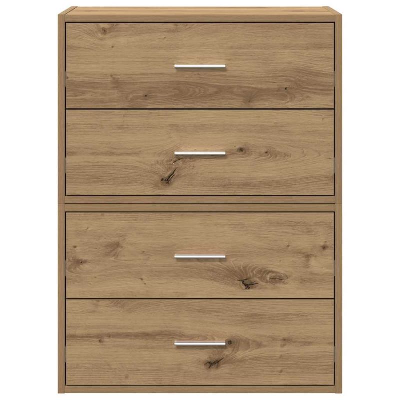 Тези практични шкафове са проектирани така, че да се адаптират към нуждите ви за съхранение и да подобрят цялостната естетика на дома ви. Стабилен и издръжлив материал: Инженерната дървесина е издръжлив и стабилен материал с гладка повърхност, която е устойчива на влага, изкривяване и разцепване, което я прави надежден избор за различни проекти.Две възможности за сглобяване: Шкафовете предлагат два начина на сглобяване за максимална гъвкавост. Можете лесно да ги подреждате един върху друг, създавайки по-висок шкаф за съхранение, който увеличава максимално вертикалното пространство. Или ги подредете един до друг, за да създадете опростена, безпроблемна конфигурация за съхранение, която се адаптира към вашето пространство.Достатъчно място за съхранение: С чекмеджетата за съхранение шкафовете за съхранение осигуряват достатъчно място за съхранение на вашите вещи. Всяко отделение е достатъчно просторно, а горният плот може да се използва за излагане, като се гарантира, че ежедневните ви вещи са подредени и лесно достъпни.Универсална употреба: Можете да поставите шкафовете навсякъде във вашата всекидневна, трапезария или спалня. Чекмеджетата за съхранение ви позволяват да организирате различни предмети - от ежедневни вещи до аксесоари.Лесна за поддръжка: Благодарение на гладката си повърхност, шкафът се почиства лесно с влажна кърпа и изисква по-малко поддръжка. Внимание:За да предотвратите преобръщане, този продукт трябва да се използва с предоставеното устройство за закрепване на стена.
