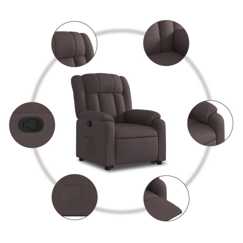 Изправящ реклайнер стол, тъмнокафяв, текстил