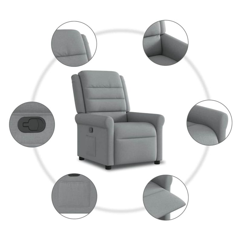Реклайнер стол, светлосив, текстил