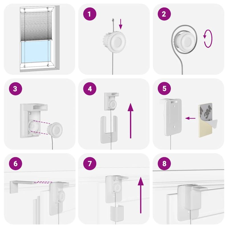 Подобрете стила и функционалността на стаята си с тази плисирана щора, която осигурява неприкосновеност на личния живот и елегантност. Издръжливи и с ниска поддръжка: Изработена от 100% полиестер, плисираната щора е изработена така, че да издържи дълго и да е устойчива на износване.Поверителност и слънцезащита: щората не е прозрачна, но и не е напълно затъмняваща, като осигурява оптимална защита на личния живот и отблясъците с плисираната си материя. Можете да регулирате нивото на поверителност, като я движите нагоре или надолу.Два начина на сглобяване: В зависимост от нуждите си можете да закрепите плисираната щора към стената или прозореца с винтове или без пробиване с помощта на скоби за пристягане.Елегантен дизайн: Благодарение на елегантния си и модерен дизайн, тази плисирана щора допълва с лекота различни интериори на стаите. Можете да я използвате във всекидневната, спалнята, офиса и т.н. Внимание:Дръжте кабелите на място, недостъпно за малки деца. Връзките могат да се увият около врата на детето. Добре е да се знае:Преди да купите щори, започнете с измерване на стъклото на прозореца. Само един приятелски съвет: платът е малко по-тесен от общата ширина, включително скобите.За да сте сигурни, че новите ви щори осигуряват пълно покритие, просто добавете 0,6 см към ширината на прозоречното стъкло, когато изчислявате какво да поръчате. ВНИМАНИЕ!Малките деца могат да бъдат удушени от примки в дърпащи въжета, вериги, ленти и вътрешния кабел, който управлява този продукт. За да избегнете удушаване и оплитане, дръжте кабелите далеч от обсега на малки деца. Шнурите могат да се увият около врата на детето. Преместете леглата, креватчетата и мебелите далеч от въжетата за покриване на прозорци. Не завързвайте кабелите заедно. Уверете се, че кабелите не се усукват и образуват примка. ВНИМАНИЕ!Децата могат да се удушат, ако това предпазно устройство не е монтирано и регулирано. Прочетете внимателно инструкциите и инсталирайте съответно. GPSR