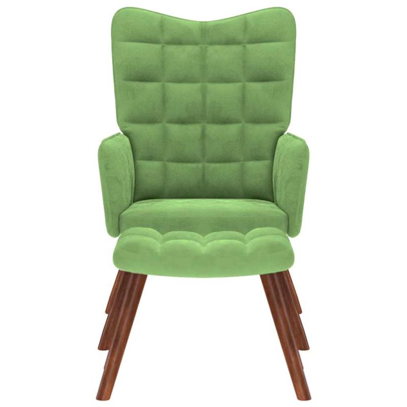 Релаксиращ стол с табуретка, Светлозелено, кадифе