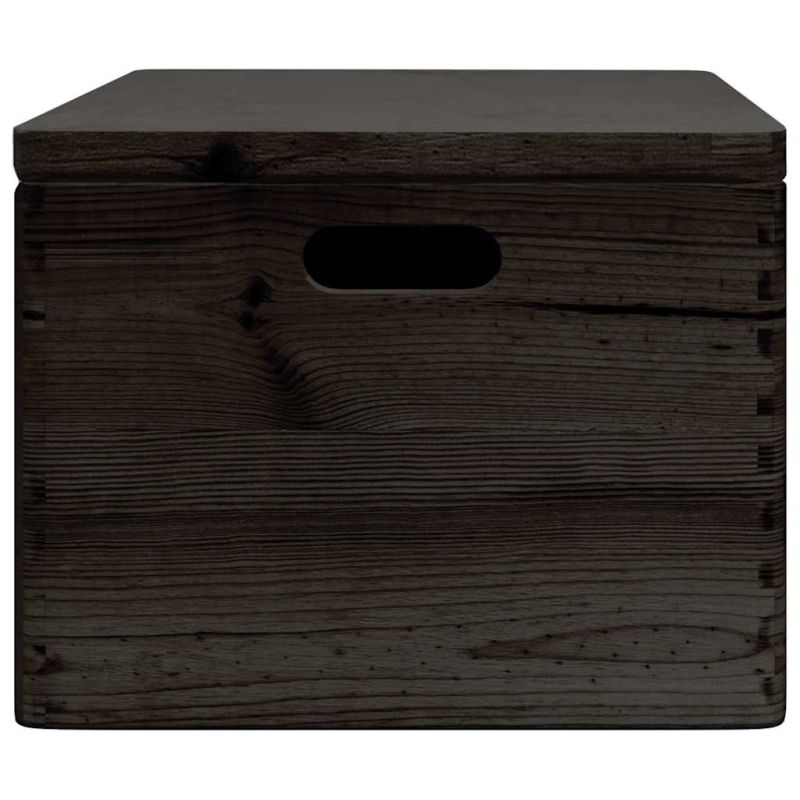 Дървена кутия с капак и дръжки черна масивна дървесина бор