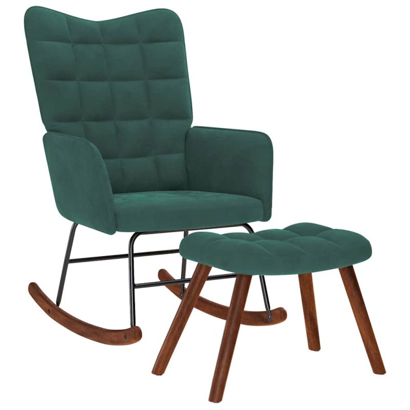 Люлеещ се стол с табуретка, тъмнозелен кадифе
