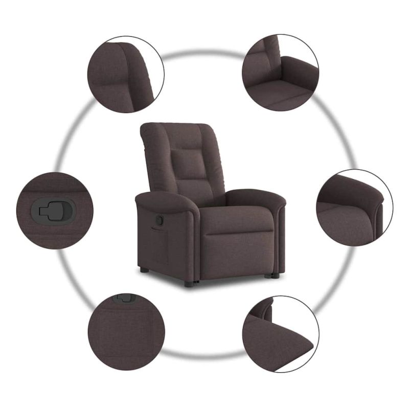 Изправящ реклайнер стол, тъмнокафяв, текстил