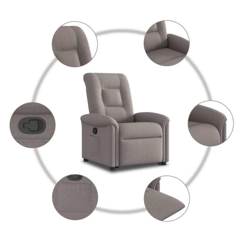 Изправящ реклайнер стол, таупе, текстил