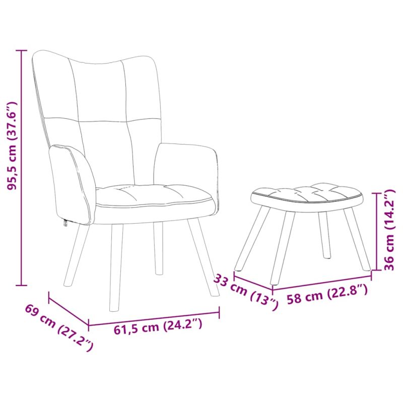 Търсите ли стол за пълноценна почивка след натоварен ден? Този удобен релаксиращ стол с табуретка за крака е идеалният избор! Мек и издръжлив материал: Полиестерната тъкан предлага комбинация от мекота, дишане и издръжливост, гарантирайки ви да изпитате максимален комфорт и уют.Здрава и стабилна рамка: Дървената и металната рамка на фотьойла осигуряват здравина и стабилност.Удобно седене: Фотьойлът се предлага с дебело подплатена седалка и облегалка, както и с подлакътници за по-голям комфорт.Универсална табуретка за крака: Табуретката е многофункционална и служи като удобна подложка за крака, когато сте се облегнали на стола, или като допълнителна седалка.Многобройни приложения: Той е отлично допълнение като релаксиращо кресло, на което да се насладите на свободното си време. Можете също да го използвате във вашата трапезария, всекидневна, ресторант и зона за отдих.