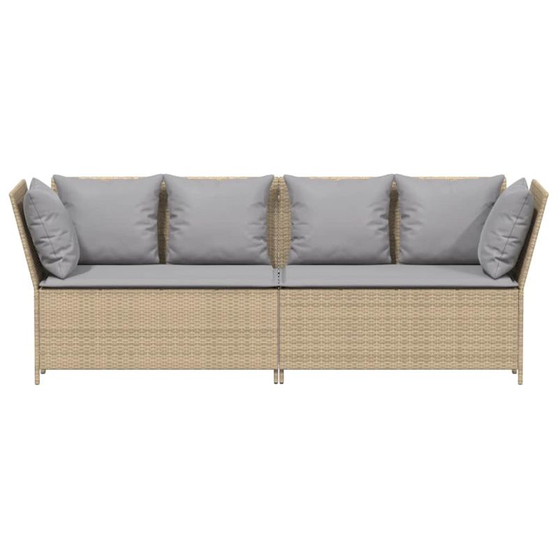Градински диван с възглавници бежов полиратан
