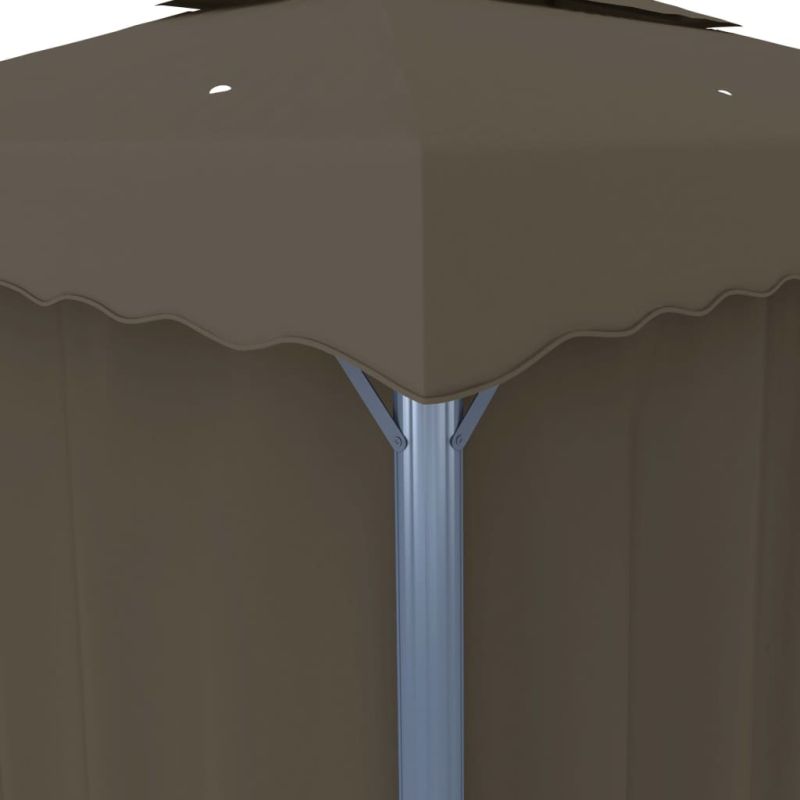 Шатра със завеси и LED светещи стрингове, 4x3 м, таупе