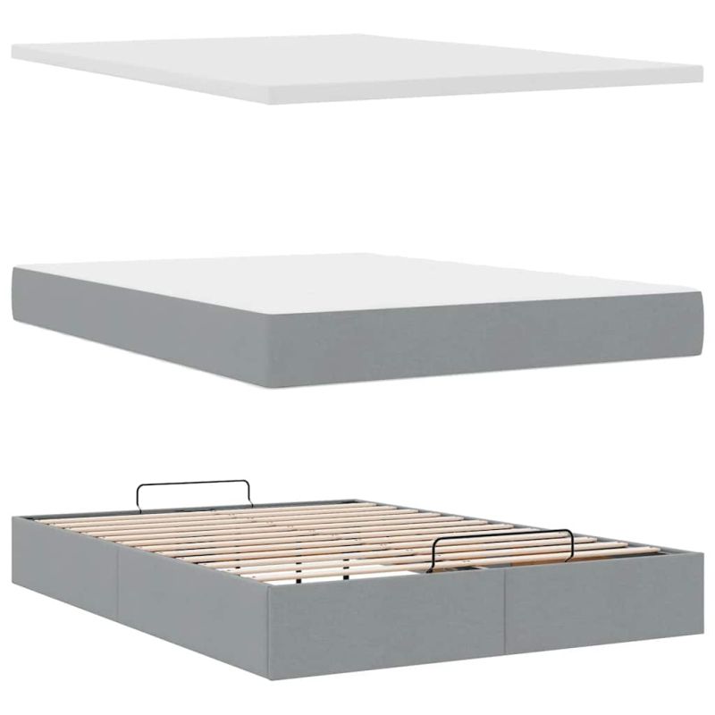 Османско легло с матрак Светло сиво 140x190 cm Плат