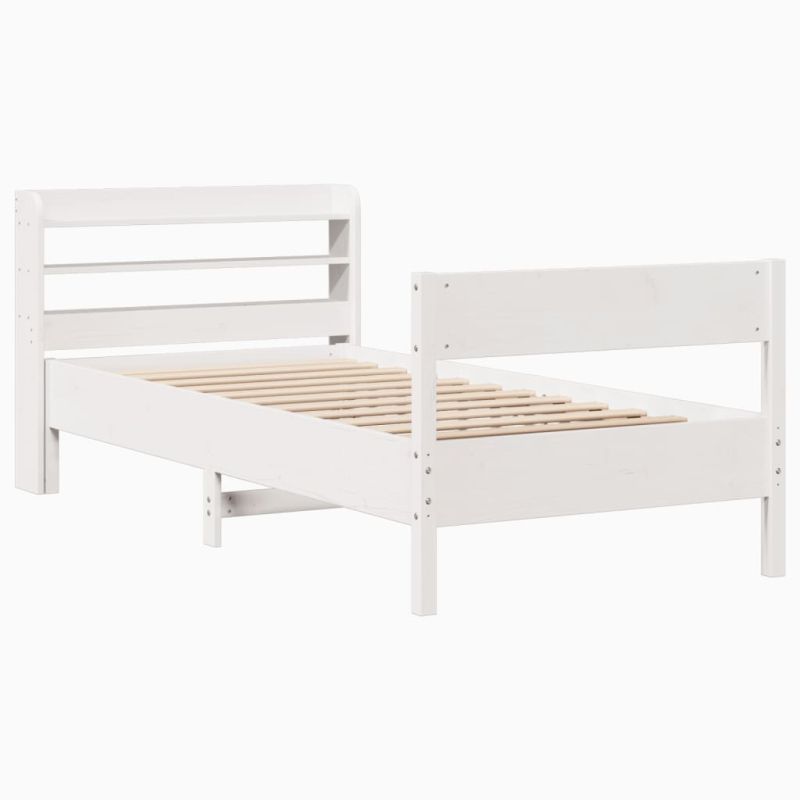 Рамка за легло без матрак, бял, 75x190 см, борово дърво масив