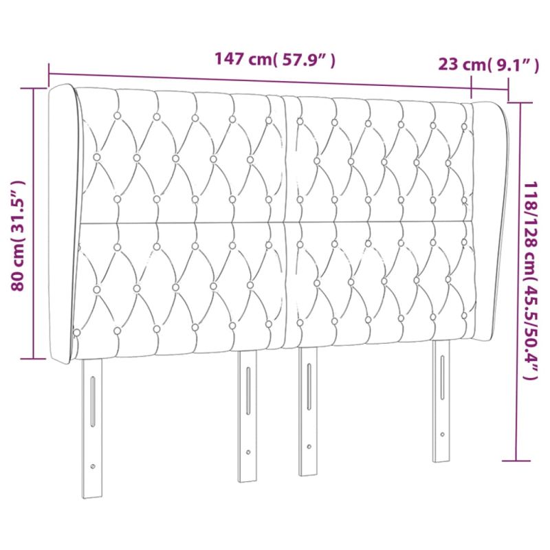 Горна табла за легло с уши, таупе, 147 x 23 x 118/128 см, плат
