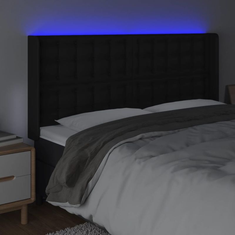 LED горна табла за легло, черна, 147x16x118/128 см